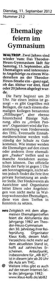 übrigens in der Zeitung als dreimaliger Organisator des Abitreffens genannt,