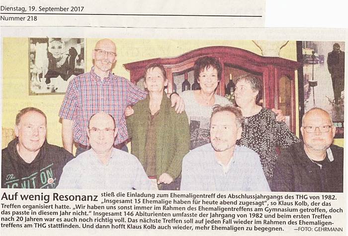 Ehemaligentreffen am THG gab, wurde die Galeria als Venue ausgeguckt, was aber der Sache keinen Abbruch tat. Jürgen Semmelmann hatte seine Frau mitgebracht, Conny Deuf ihren Mann. Die Zeit verging mal wieder wie im